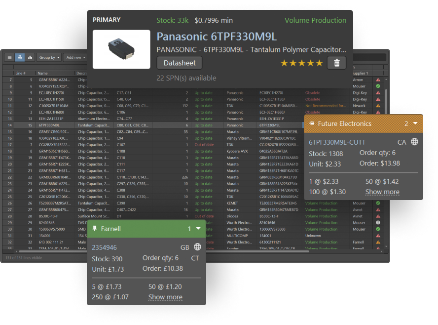 Dostęp do danych o komponentach w naprawdę użytecznej formie. Możliwość łatwego wyboru części, które spełnia wymagania – bez ryzyka natrafienia na niedostępny lub wycofany z produkcji komponent.