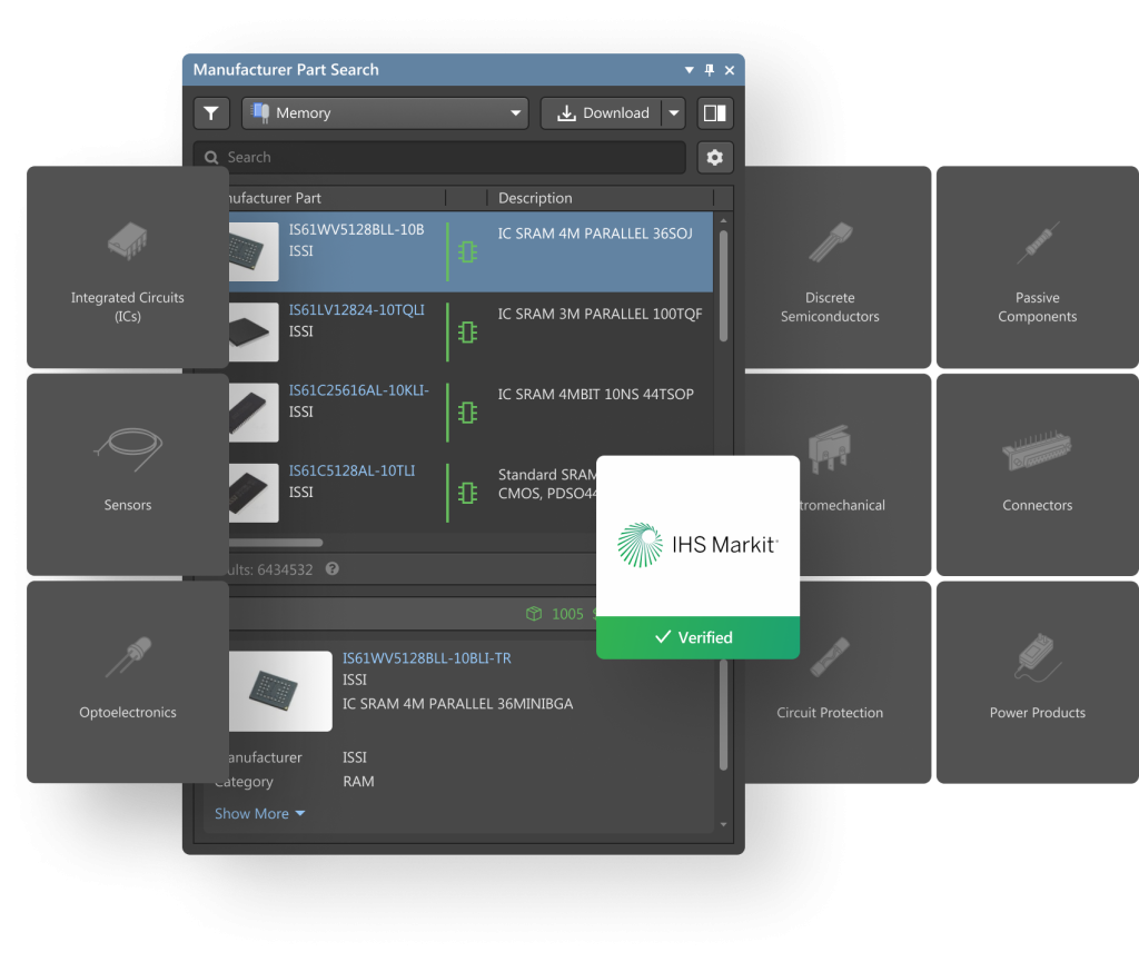 Ogromna biblioteka komponentów zweryfikowanych danymi IHS Markit. Od najprostszych rezystorów, kondensatorów i cewek po zaawansowane układy scalone – wszystkie części w Manufacturer Part Search pochodzą z jednego, wiarygodnego źródła.