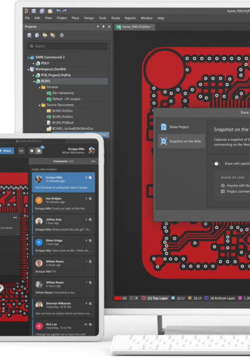 Altium 365 umożliwia łatwe i bezpieczne udostępnianie projektów osobom z dowolnego miejsca na świecie – zarówno wewnątrz, jak i poza organizacją. Postępy prac można prezentować w czasie rzeczywistym kierownictwu, działowi zakupów czy producentom, bez konieczności instalowania dodatkowego oprogramowania.